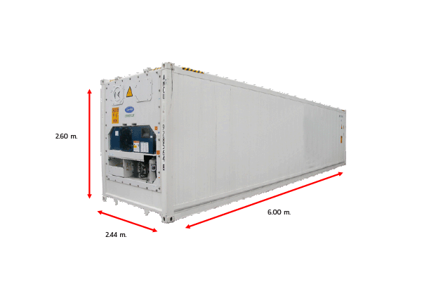 ตารางแสดงขนาดและความจุของตู้คอนเทนเนอร์แบบดัดแปลง ขนาด 20 ฟุต (non-operating reefer container)