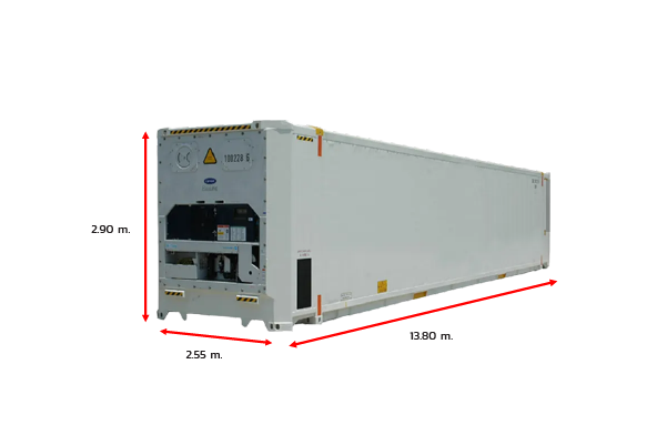 ตารางแสดงขนาดและความจุของตู้คอนเทนเนอร์แบบห้องเย็น ขนาด 20 ฟุต